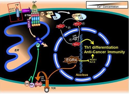 研究者Jonathan Soboloff教授解释道,其他早期生长反应蛋白(EGR)对T细胞的活性很重要,但是EGR4是否也具有免疫功能却被大大忽略了。我们的研究揭示了EGR4重要性的一个新方面。在初始的实验中,这些研究人员发现T细胞活化与EGR4上调相关。他们随后发现,从免疫细胞中敲除或清除EGR4会导致钙信号的急剧增加和Th1细胞群体的扩张。Th1细胞对包括肿瘤细胞在内的外来实体的存在作出反应,激活杀伤性T细胞,然后清除入侵者。Soboloff博士说,“我们从以前的研究工作中知道T细胞控制钙信号,而且当细胞内钙水平升高时,钙信号可以驱动T细胞活化。”